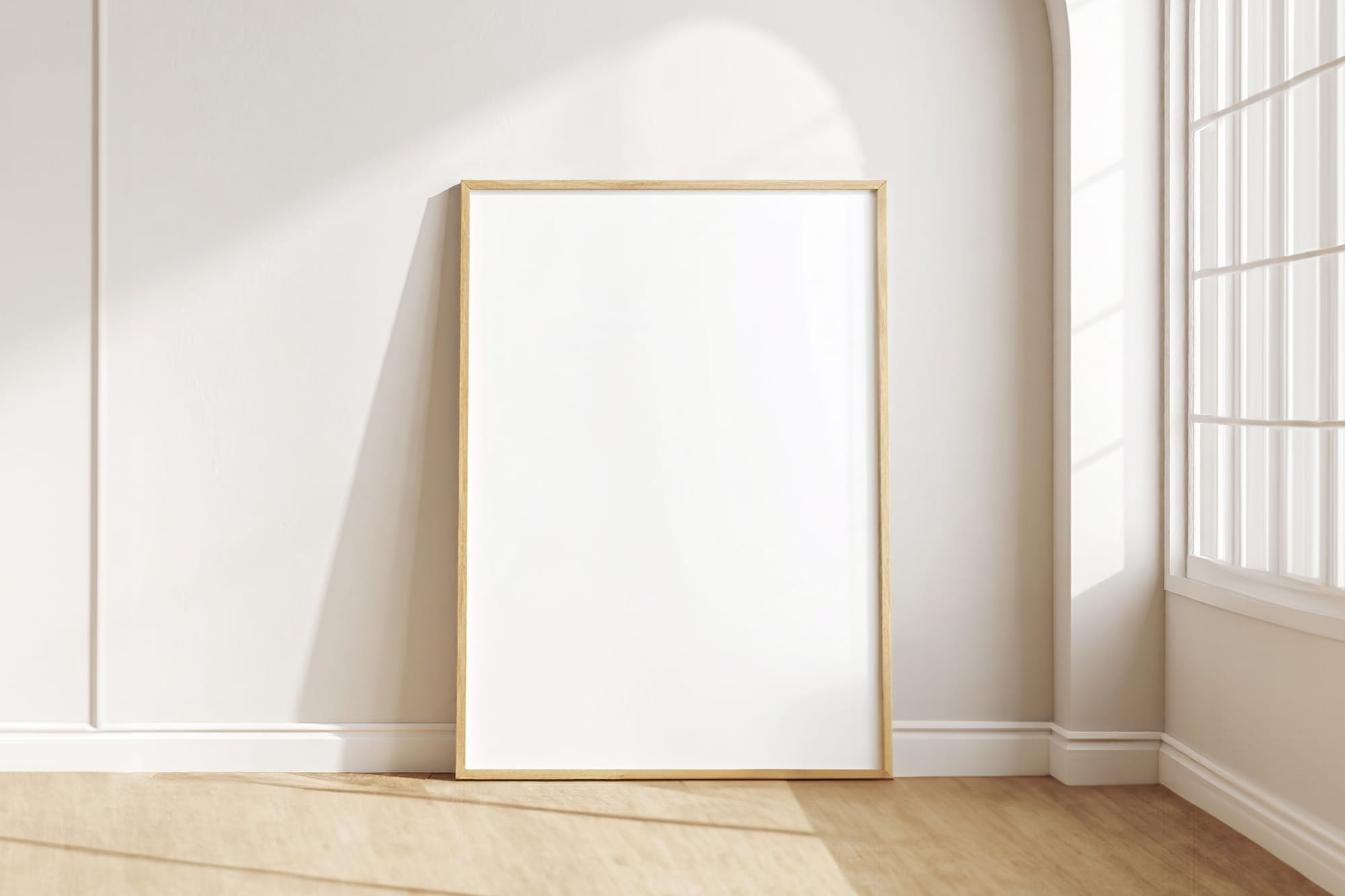 Cozy Light Corner Frame Mockup featuring soft natural lighting and a warm interior corner, ideal for presenting poster designs, wall art, and branding visuals in a calm and elegant home setting.