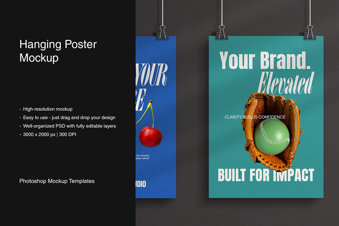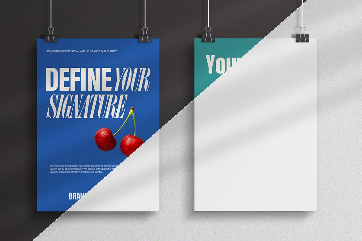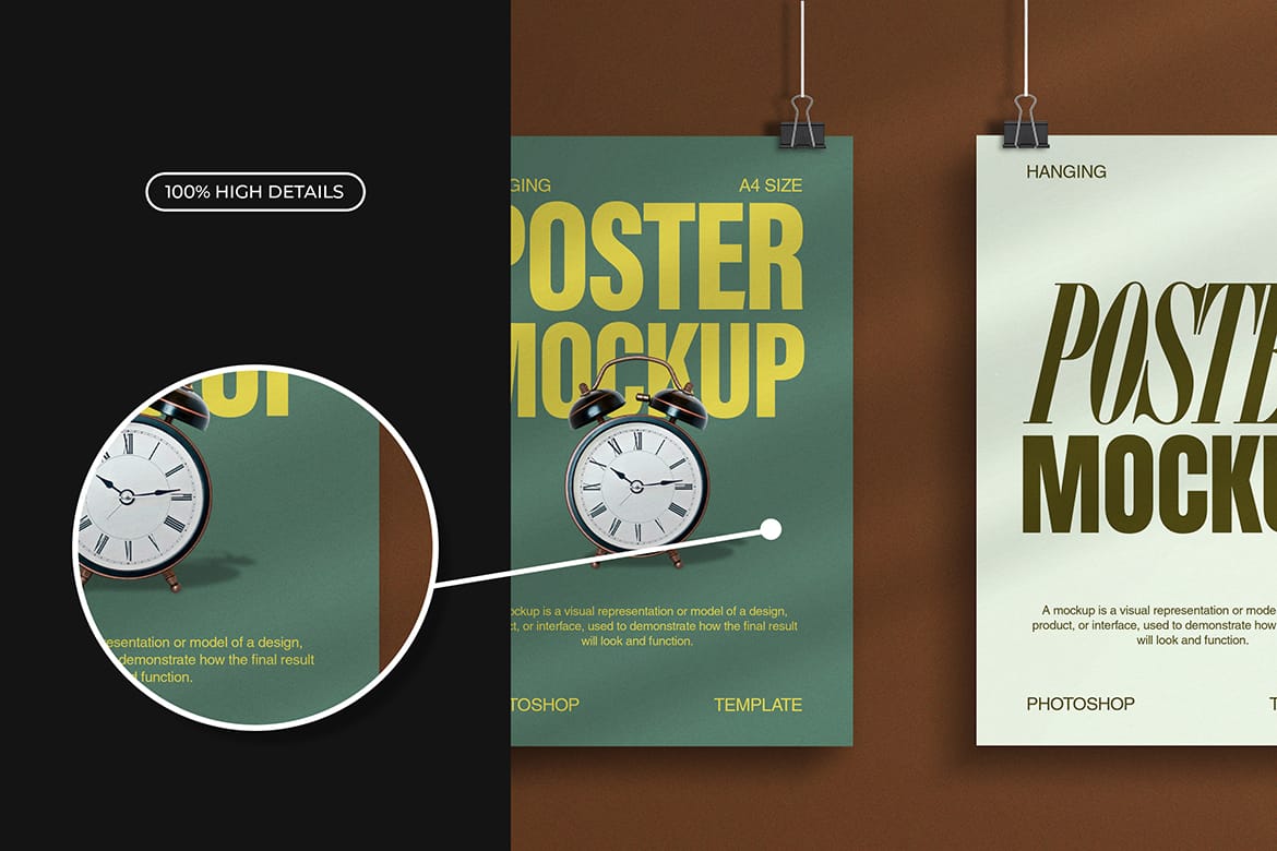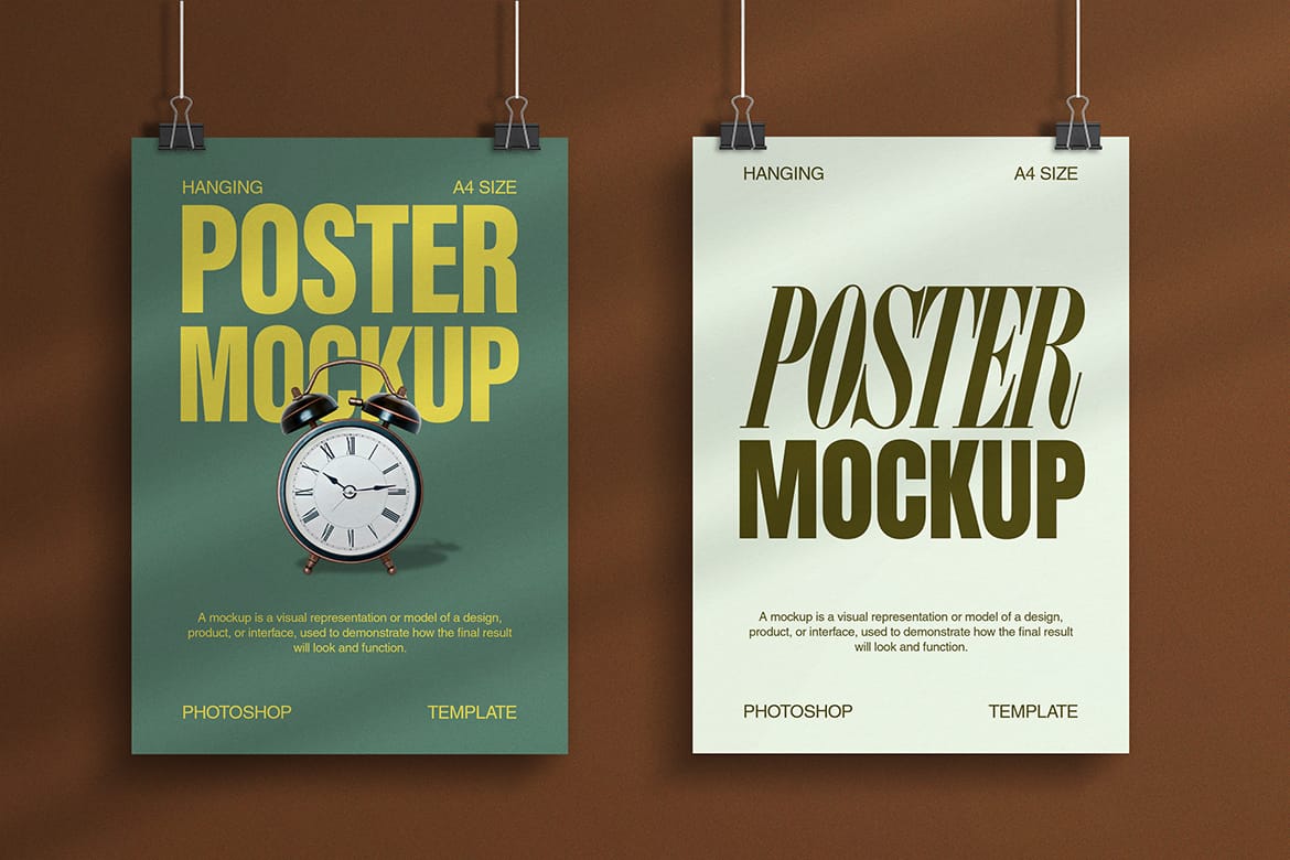 Modern Hanging Poster Mockup with Shadow Poster Mockups Mockups Psd Modern Hanging Poster Mockup with Shadow