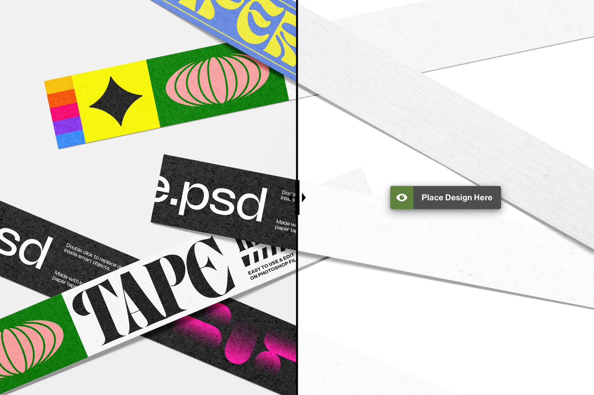 Paper Tape Mockup featuring a subtle textured adhesive look, ideal for presenting branding elements, packaging details, and creative compositions in a clean and modern style.