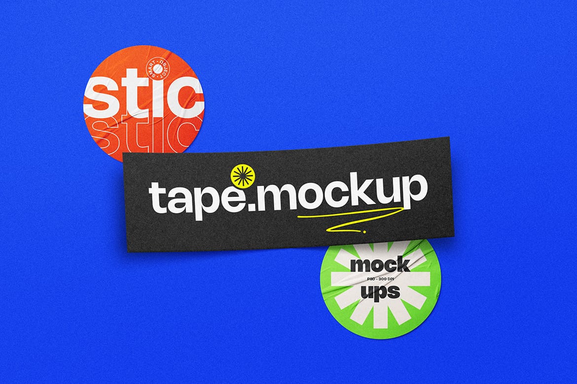Tape and Glued Sticker Mockup